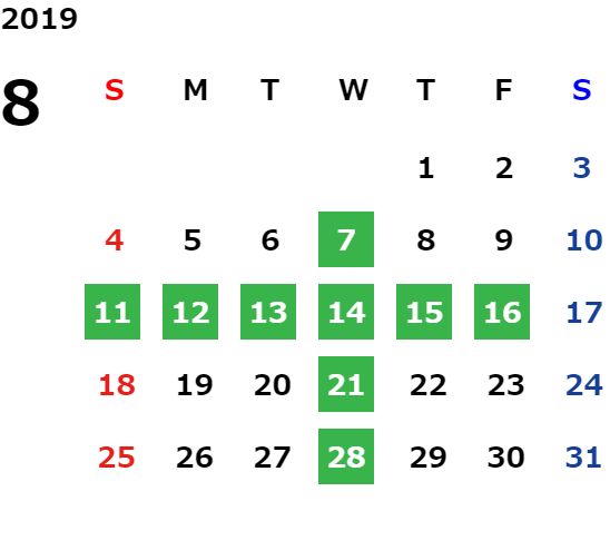 なお、休業中にいただきましたお問合せにつきましては、8月21日より順次ご対応させていただきますので、ご了承ください。