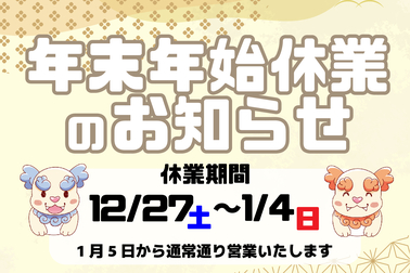 なお、休業中にいただきましたお問合せにつきましては、1月5日より順次ご対応させていただきますので、ご了承ください。