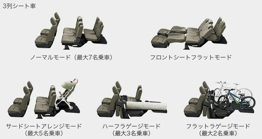 シエンタは三列目が二列目のシートの下に収納できるので、荷室がすごく広くてシートアレンジも色々出来るのが良いですよね。
