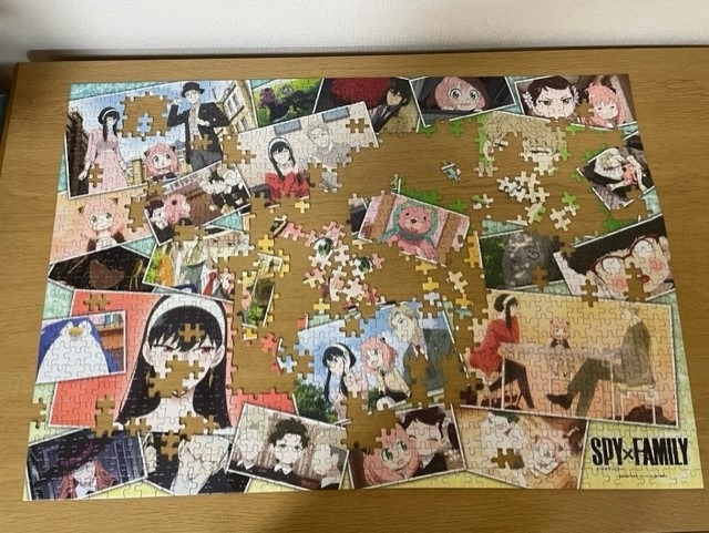 スパイファミリーのパズルです♬1000ピースあったので、気が遠くなりそうでした。初めはやる気だった子どもも次第にYouTubeなどを見始めてしまい😅私一人でやることに…