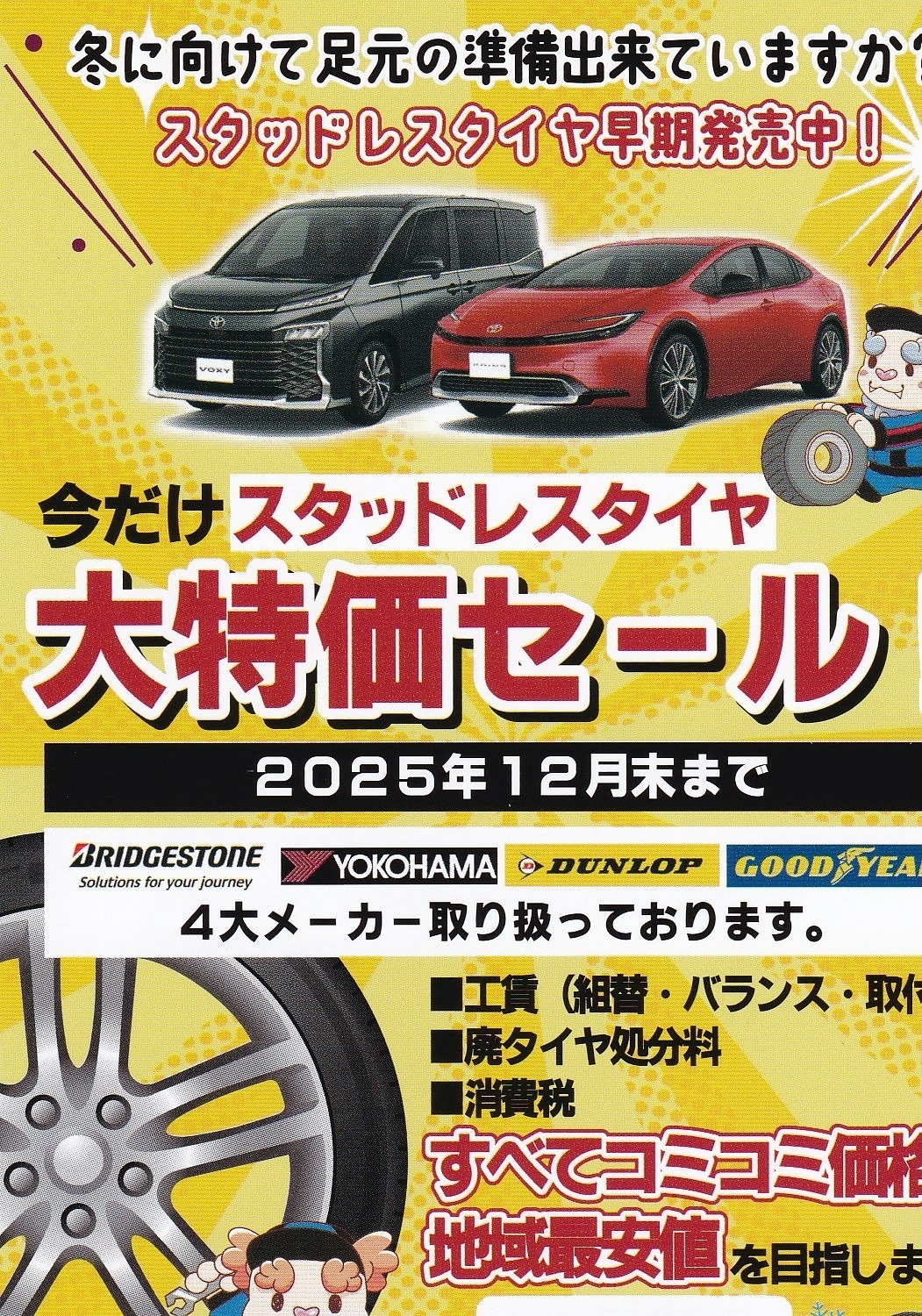 お早めに冬タイヤへの履き替え予約お願いいたします。