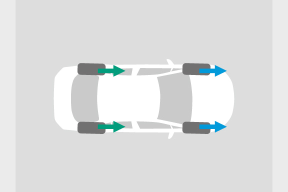 路面状況を検知し、前後輪トルク配分を緻密に制御することで、滑りやすい路面での安心感に加えドライ路面での力強い発進や旋回時のライントレース性を向上させています。
