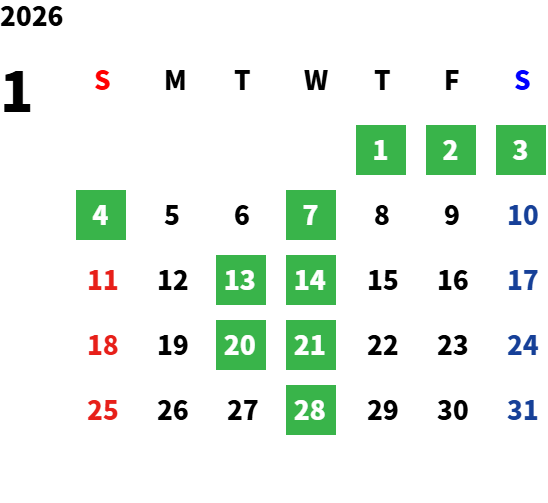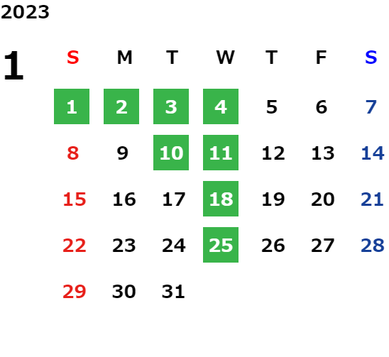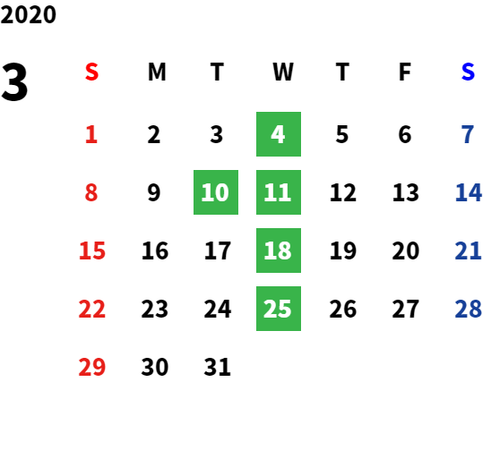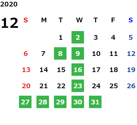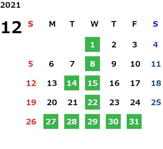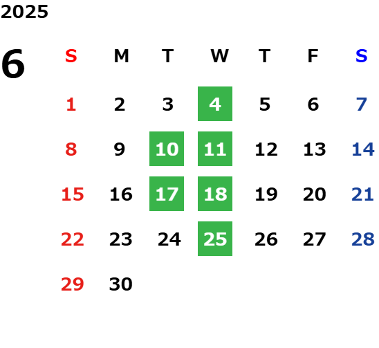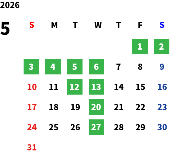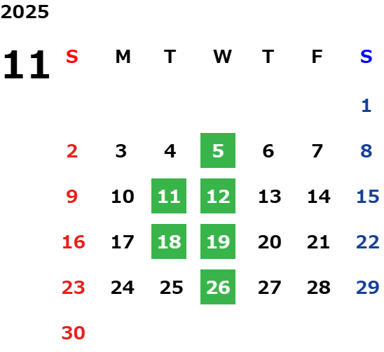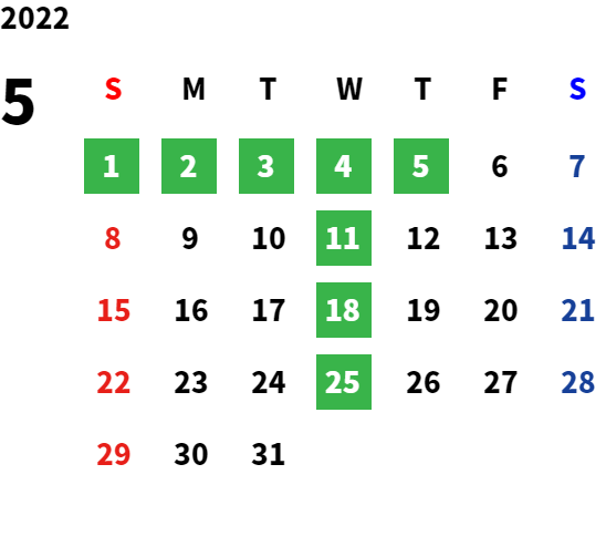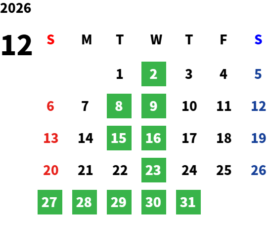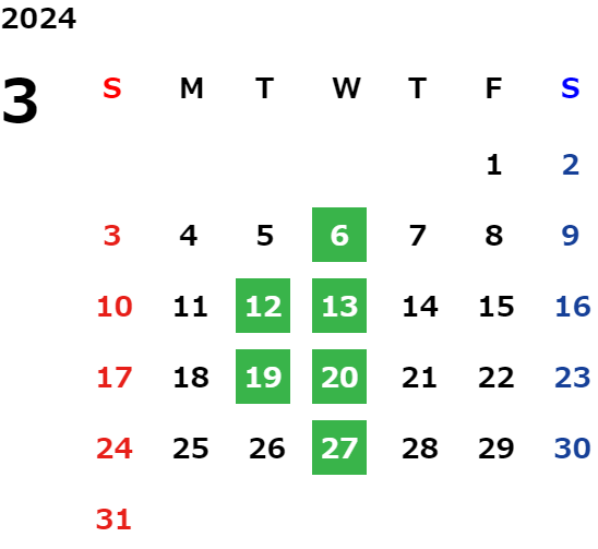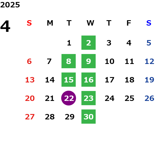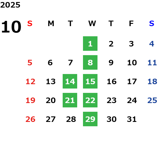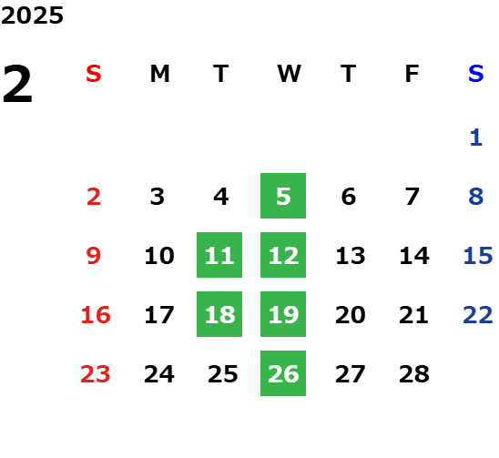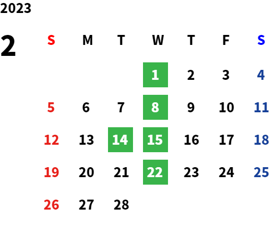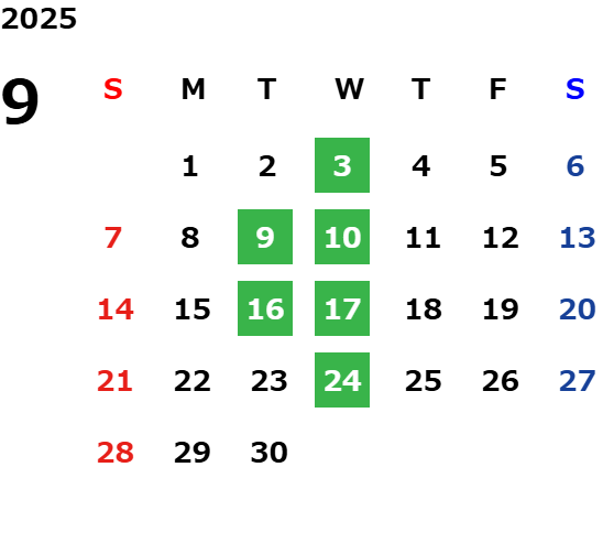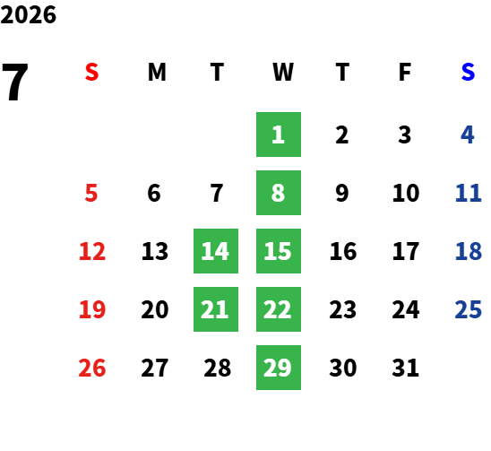 毎週水曜日、第二・第三火曜日